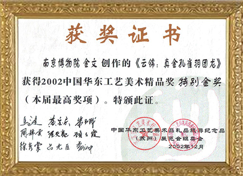 资质荣誉 » 2002中国华东工艺美术精品奖特别金奖