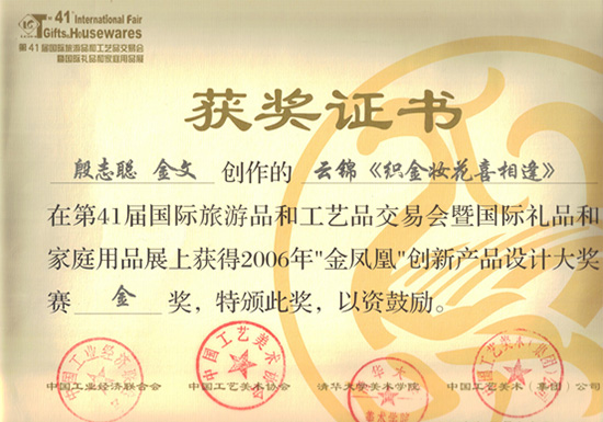 云锦《织金妆花喜相逢》荣获2006年“金凤凰”创新产品设计大奖赛金奖